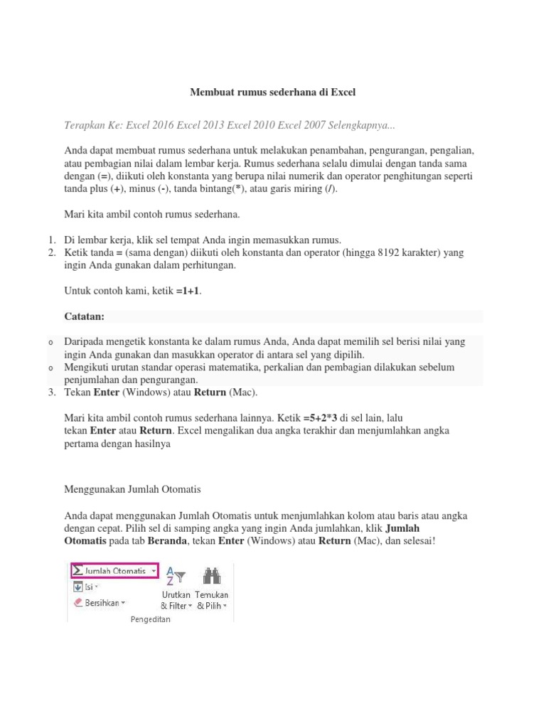Membuat Rumus Sederhana Di Excel Dukungan Office