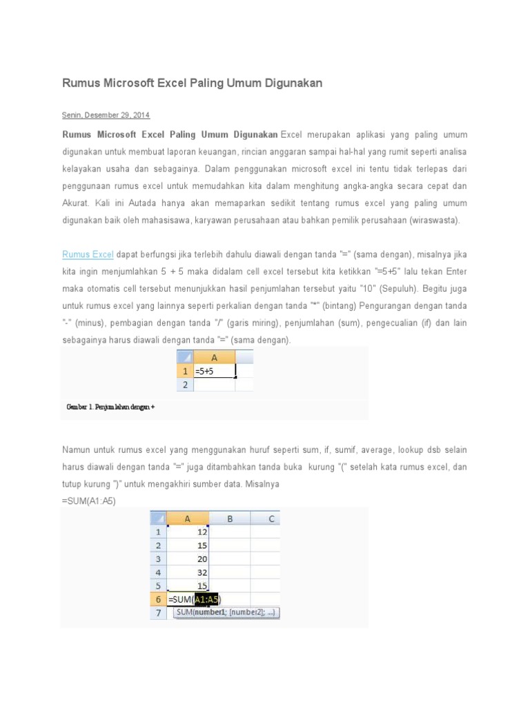 Rumus Microsoft Excel Paling Umum Digunakan Docx