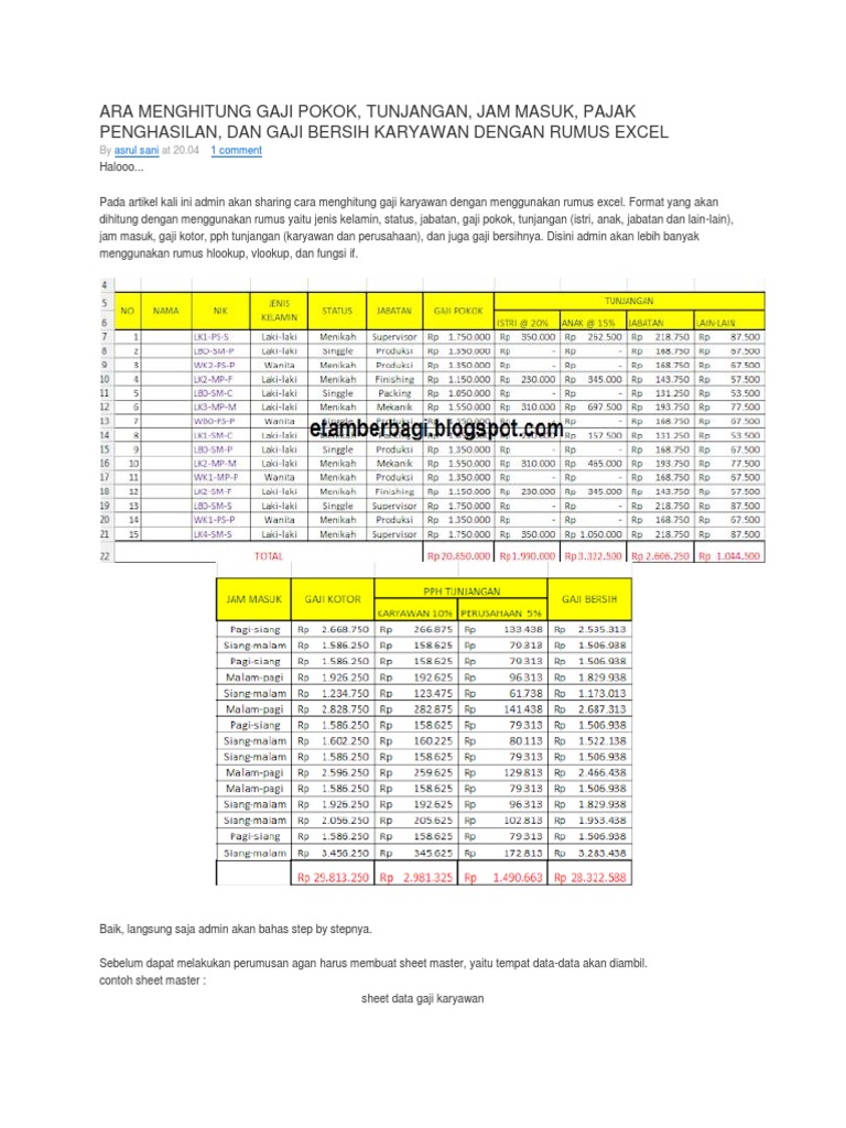 Contoh Format Untuk Menghitung Gaji Karyawan Dan Ditambah