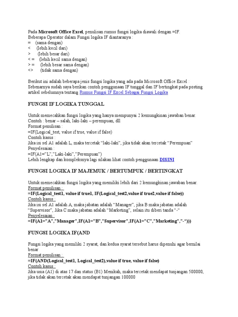 Contoh Penggunaan Rumus If Tunggal Dan If Bertingkat Pada Ms
