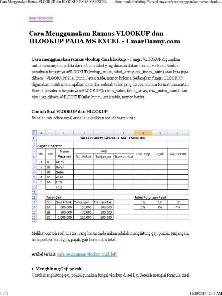 Contoh Soal Excel Vlookup Dan Hlookup Textxls Kumpulan
