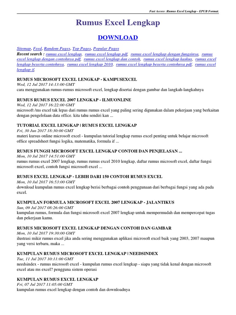 Sesuai judul dari artikel ini yaitu kumpulan rumus excel lengkap dan fungsinya pdf pada kesempatan kali ini kami akan merangkum beberapa link download kumpulan rumus excel 2007 lengkap yang bisa anda praktekkan sendiri di microsoft excel 2007. Waktu 4 sesi 1 sesi 45 menit. Sekian ulasan yang dapat kami sampaikan berkaitan dengan kumpulan rumus excel lengkap semua fungsi yang terbaru 2018.