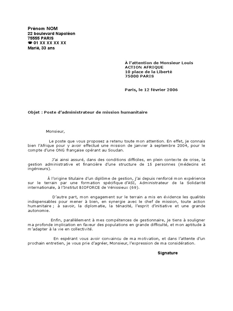 Retrouvez dans cette section toutes les lettres de motivation pour une ONG. Travailler dans lhumanitaire représenterait pour moi une façon de continuer dans la. Mais toute langue supplémentaire sera un atout de choix sur ta lettre de motivation.