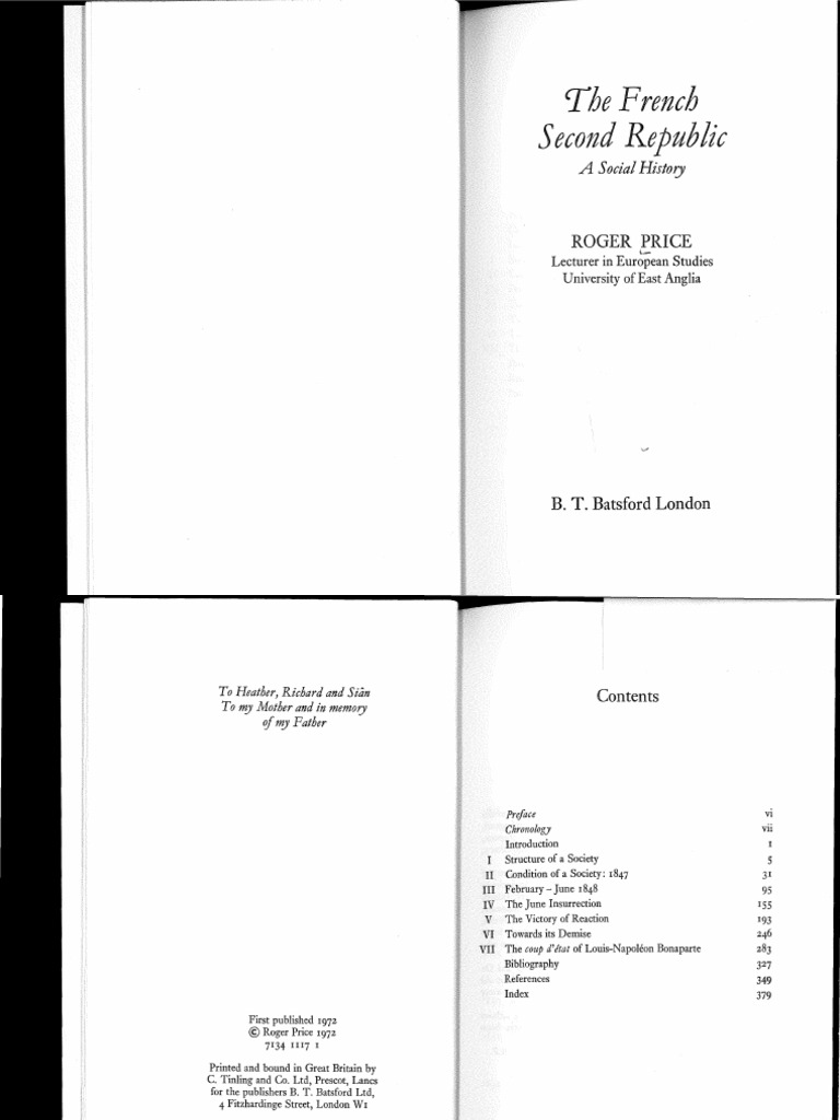 Roger Price The French Second Republic A Social History B T Batsford 1972 Bourgeoisie French Revolution