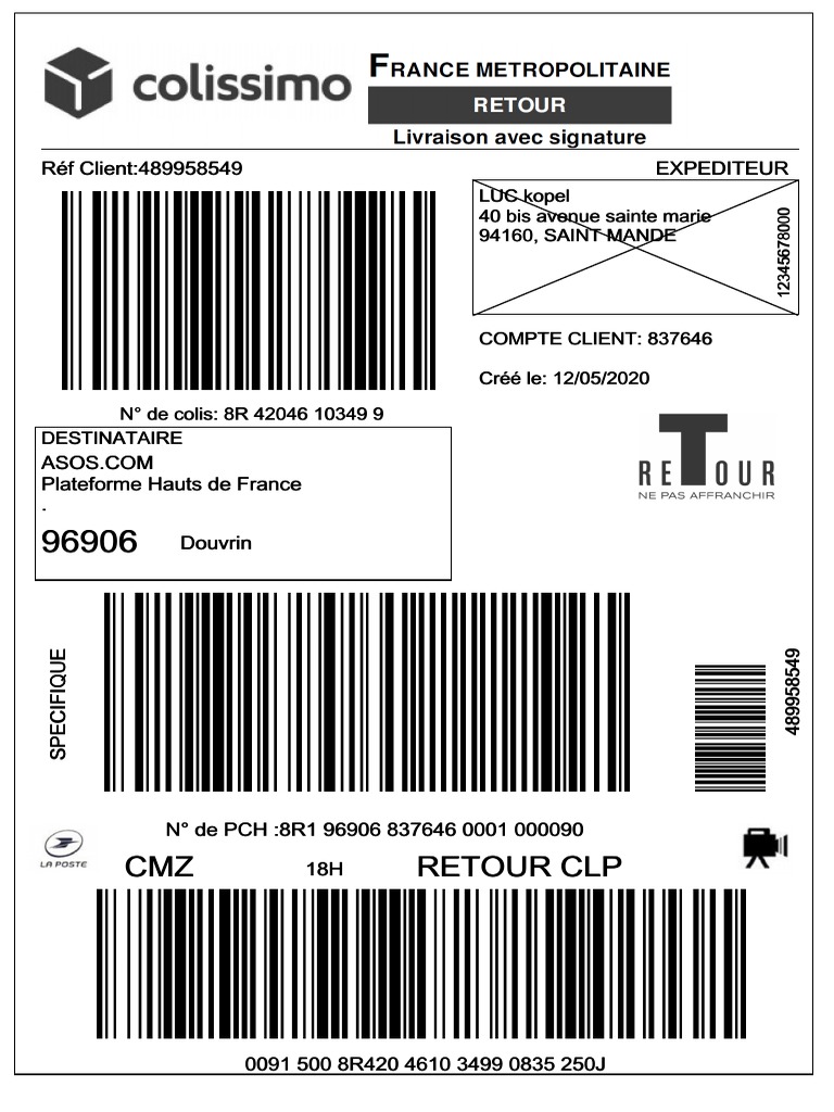 Vous avez la possibilité de leur envoyer un courrier par lettre recommandée à Asos Customer care Hercules Way leavesden Park Leavesden Watford WD25 7GR Angleterre. Votre numéro Asos. En faisant le choix de Colissimo vous avez le choix entre un retour Asos Poste un renvoi via un point relais ou encore directement dans votre boîte aux lettres.